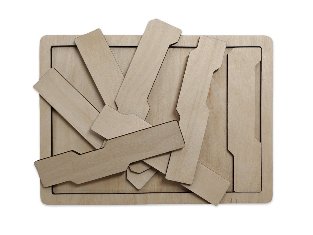 Tyto dřevěné hlavolamy, které se na první pohled zdají být jako jednoduchá skládačka, prověří vaše logické uvažování a prostorovou představivost. Cílem je vždy naskládat dílky do připraveného rámečku, přičemž řešení je často skryto v neotřelém skládání dílků jinak, než by se na první pohled mohlo zdát.